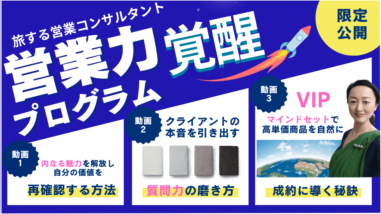世界中どこに行っても通用する「質問力」と「自己価値の認識」こそが、無理なく自然に成約へと導く最も強力な武器だということを。